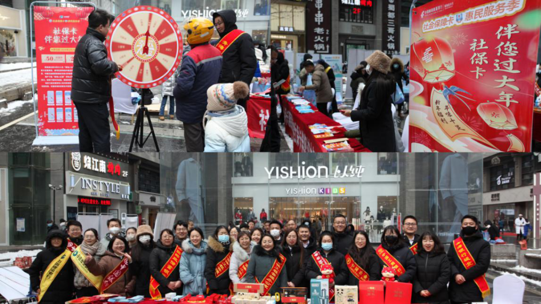 2月2日,农历小年瑞雪纷纷,年味浓浓,青海省人社厅金保工程管理办公室联合西宁市社保局、10家社保卡合作银行、中国银联青海分公司在城西区力盟步行街开展“社保卡伴您过大年”惠民服务季宣传活动,现场人头攒动,热闹非凡。