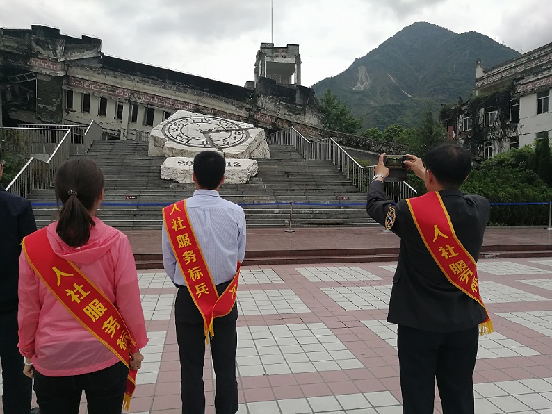 5月9日,全国“人社服务标兵”先进事迹巡回宣讲团赴映秀镇5.12震中地震遗址纪念馆开展特殊党日活动。